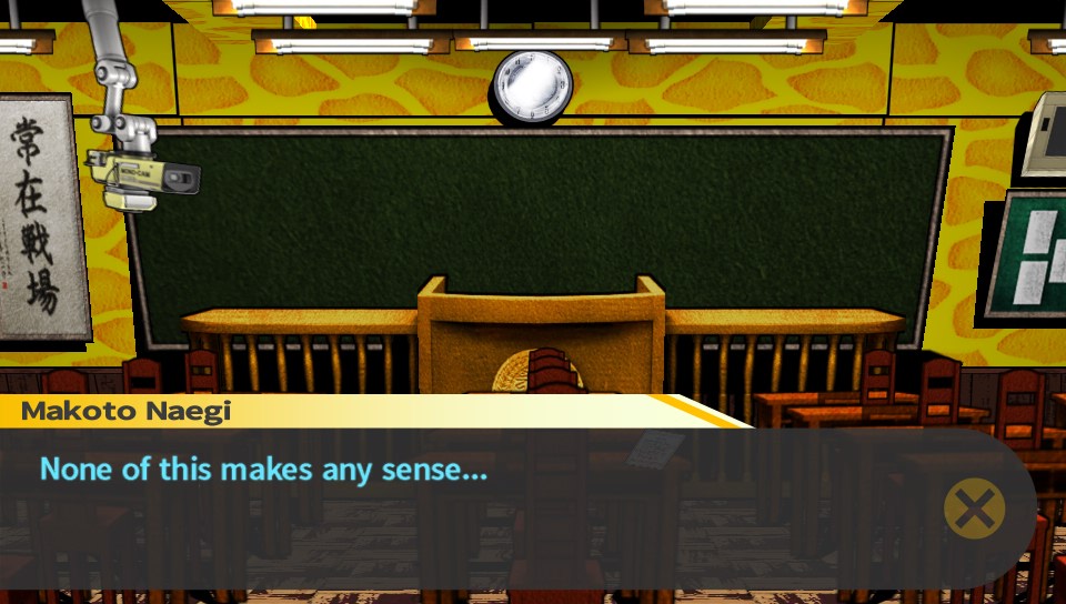 Not to get off subject because this is still subject.. But couldn’t Makoto go Super Saiyan and bust threw that god damn door? Seriously… But then we wouldn’t have a game to play…