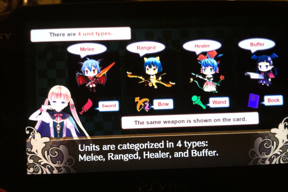Yep.. Bootleg picture again.. You can not take screen shots in the English release… So bootleg camera shots! But yep that is your 4 Unit types. Also when they are on the board they are these little nendroid looking characters… Don’t expect verity here.. They mostly look the same.. just with a little different clothing.. After that you have different class types like Hybrids, Undead, Demi, Dragon and a bunch more. So if you wanted to stay with a one type in your 40 Card Deck.. You can.. but it is really all up to you and I would suggest just mix and matching. The more variety.. the better and you can also Place a card of the same class on a card on the board and combine them.. but you can only upgrade them once…