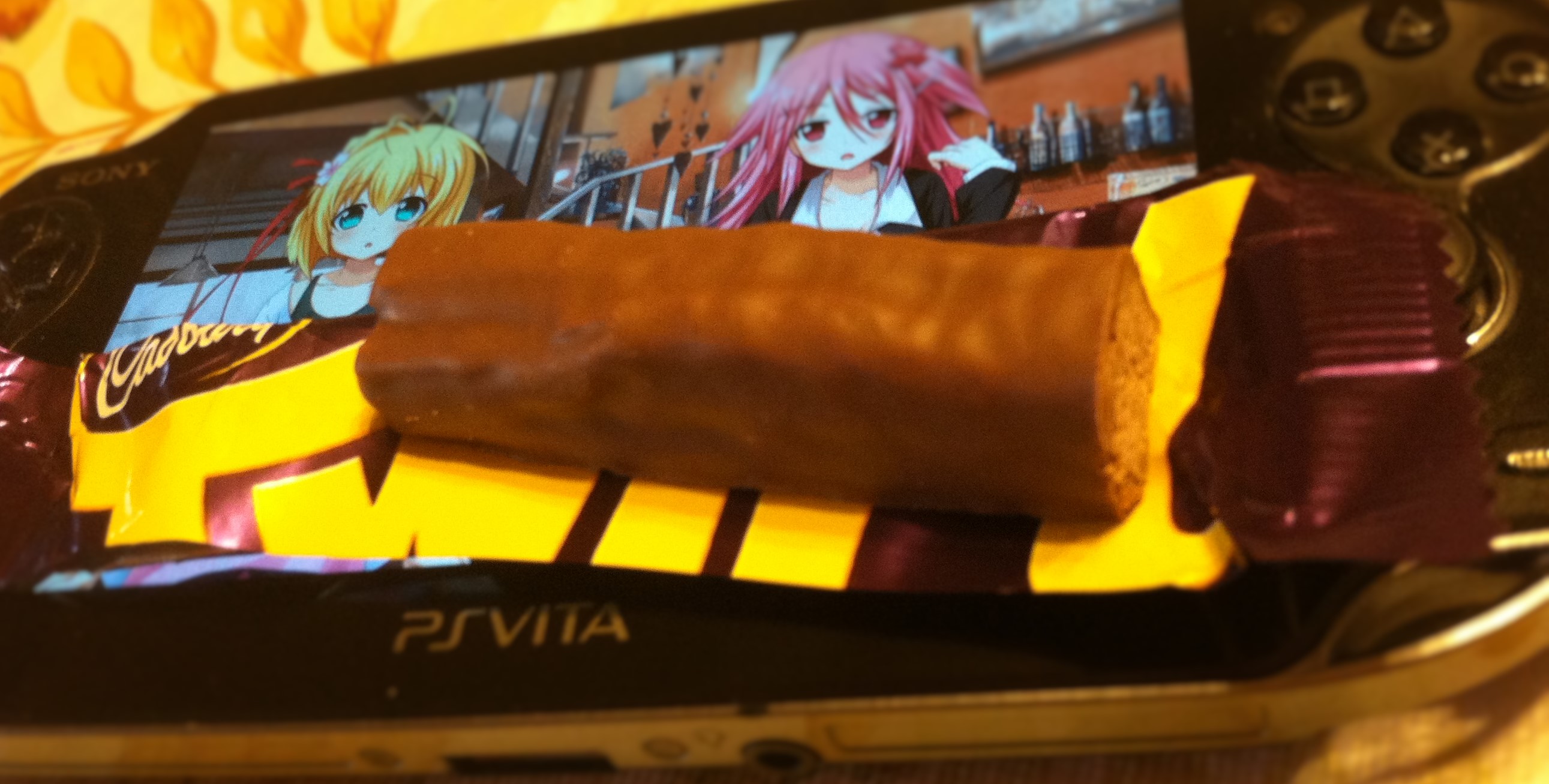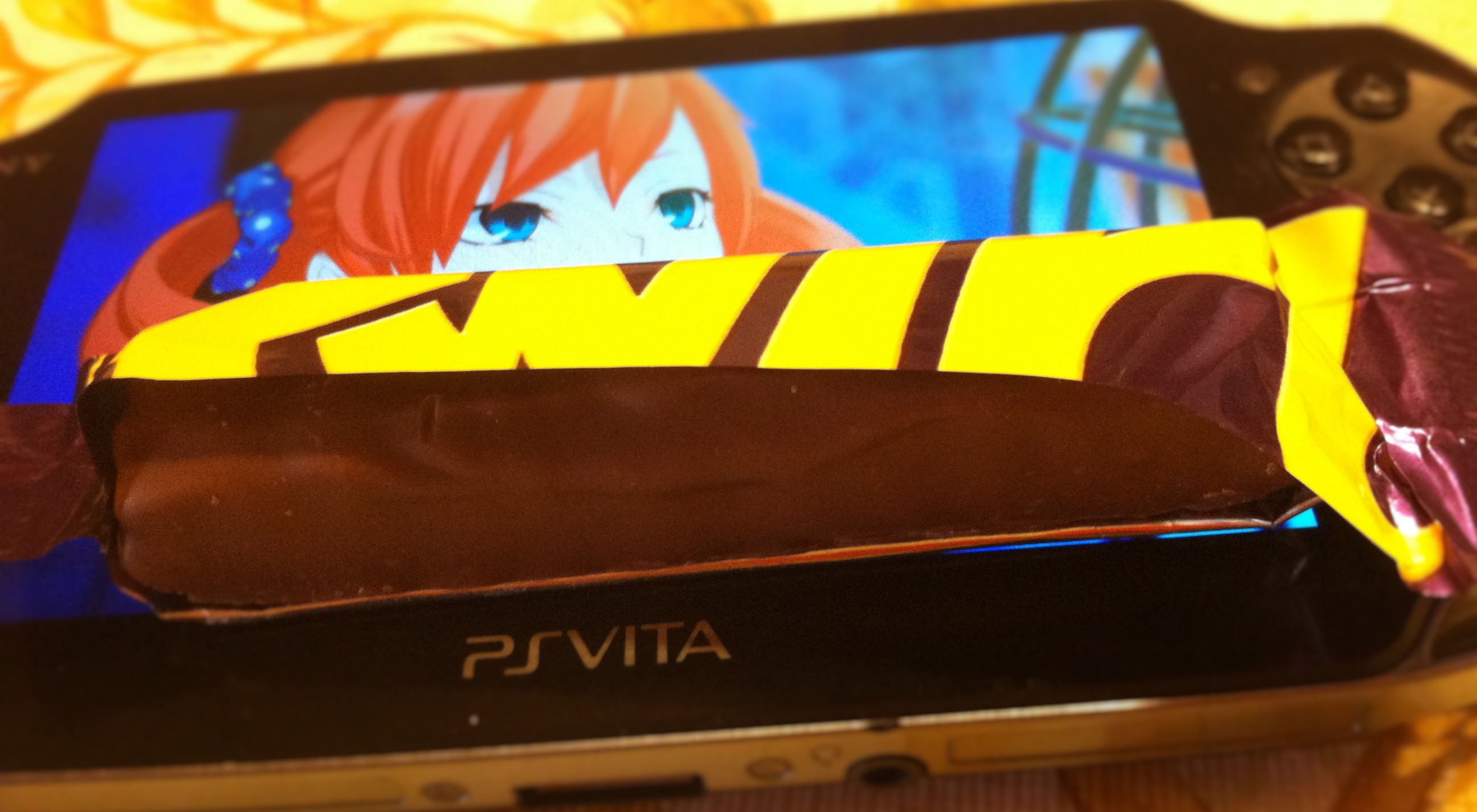 Positives and negatives of the Cadbury Twirl on a PlayStation Vita..