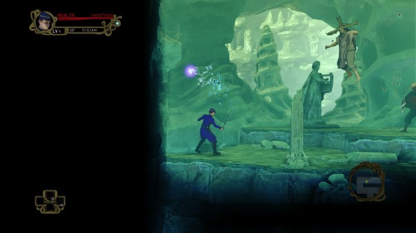 So I get the game started and surprise surprise this is a 2d side scroller. I found myself playing as that girl from that Sony game that tanked because it had some horrible six axis controls at times… then tanked again when they made a CGI Movie.. Well I think that was her.. She had read hair.. I really don’t know what the fuck is going on but she was beating some ass.. You run into some French looking guys.. or Old Army people.. and they are trying to stop the demon creatures.. You are like ” I was born in the abyss, molded by it!”